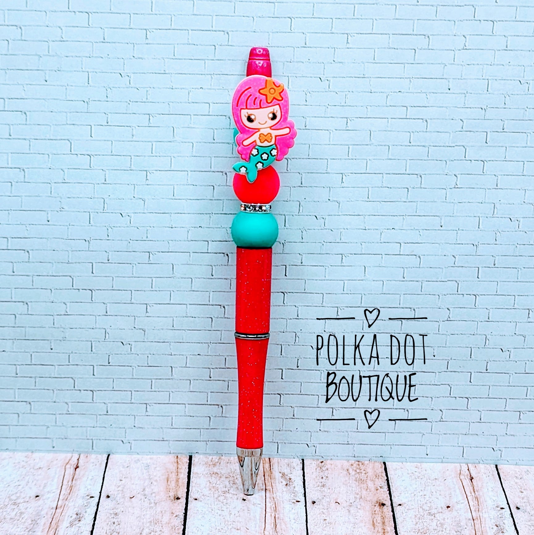 Mermaid : Bright Pink Hair Silicone Beaded Pen